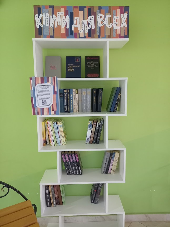 Цель проекта «Книги для всех» – дать ненужным книгам новую жизнь и новых читателей. В холле ЦДО ДиМ «Эврика» на ул. Чигладзе 29 установлен стенд, где собраны книги, которые ждут своих читателей. На полках можно найти книги о Великой Отечественной войне детскую, классическую, современную литературу, фэнтези, детективы и нон-фикшн. Любой желающий может взять книгу, прочесть и вернуть обратно или принести взамен свою.